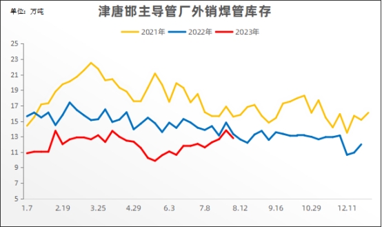 外销焊管 本周(8.4)管厂焊管库存12.8万吨,比上周同期降1万吨,下降7.25%;比上月同期增1.19万吨,增长10.25%;比去年同期降0.53万吨,下降3.98%。