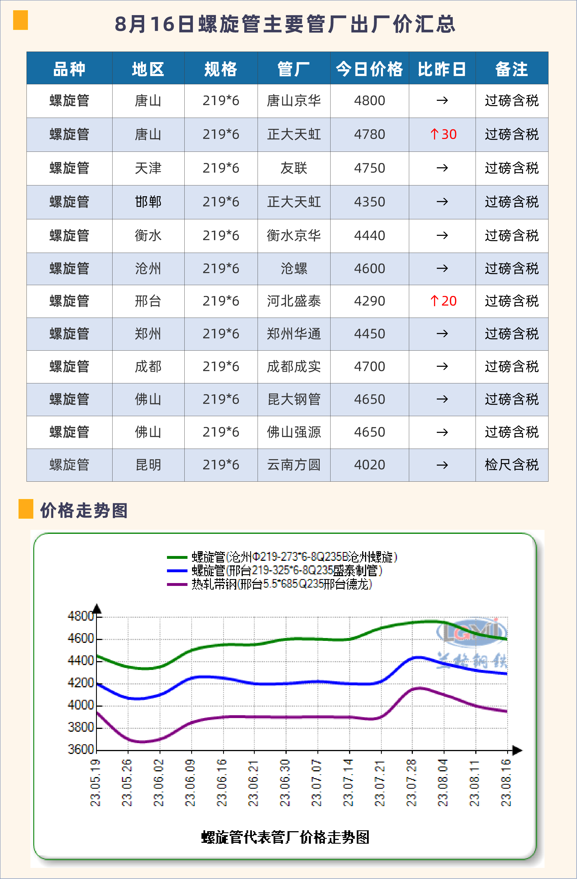 • 8月16日螺旋管主要管厂出厂价汇总