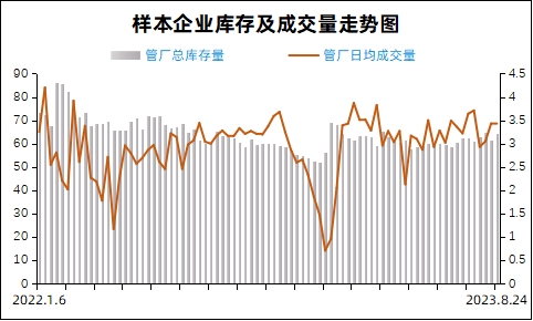 日均成交量 本周(8.25)管厂日均成交量3.45万吨,比上周同期增0.02万吨,增长0.58%;比上月同期减0.26万吨,下降7%;比去年同期增0.28万吨,增长8.83%。