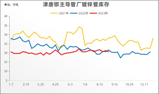 外销镀锌管 本周(9.1)管厂镀锌管库存20.62万吨,比上周同期降0.64万吨,下降3.01%;比上月同期降0.68万吨,下降3.19%;比去年同期降0.95万吨,下降4.4%。