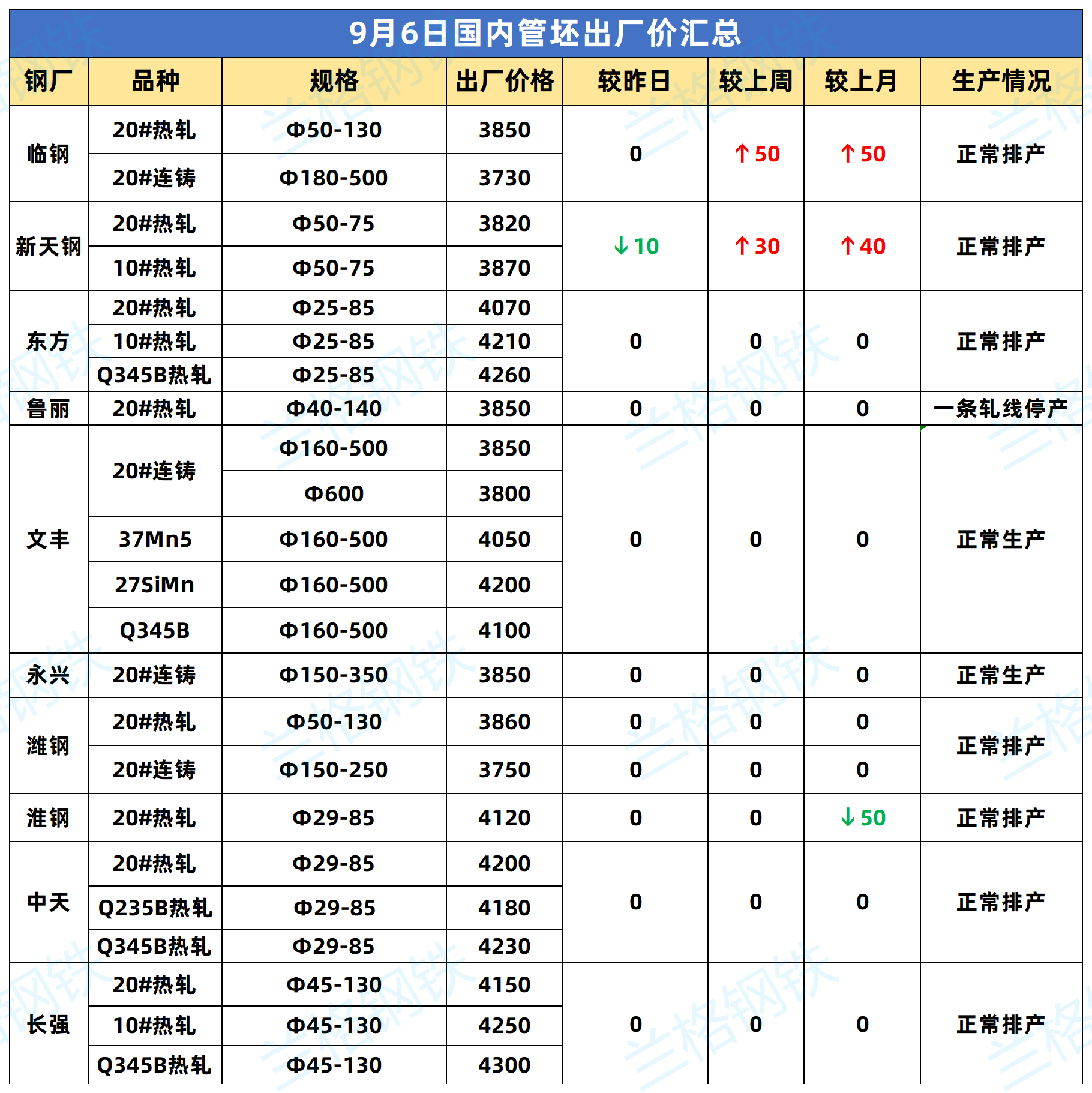 • 9月6日国内管坯出厂价汇总