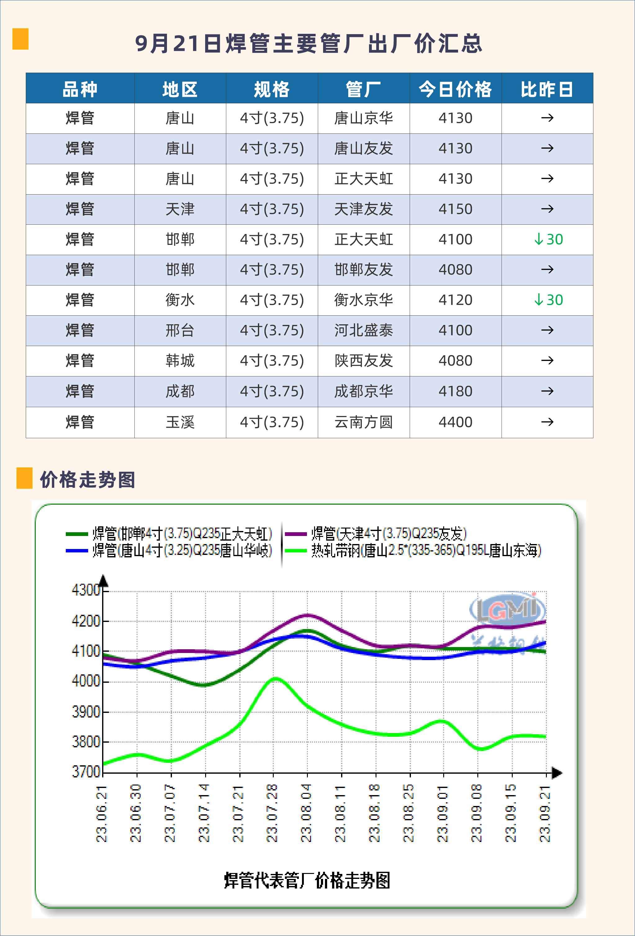 • 9月21日天津友发钢管集团股份有限公司第一分公司出厂价下调30元