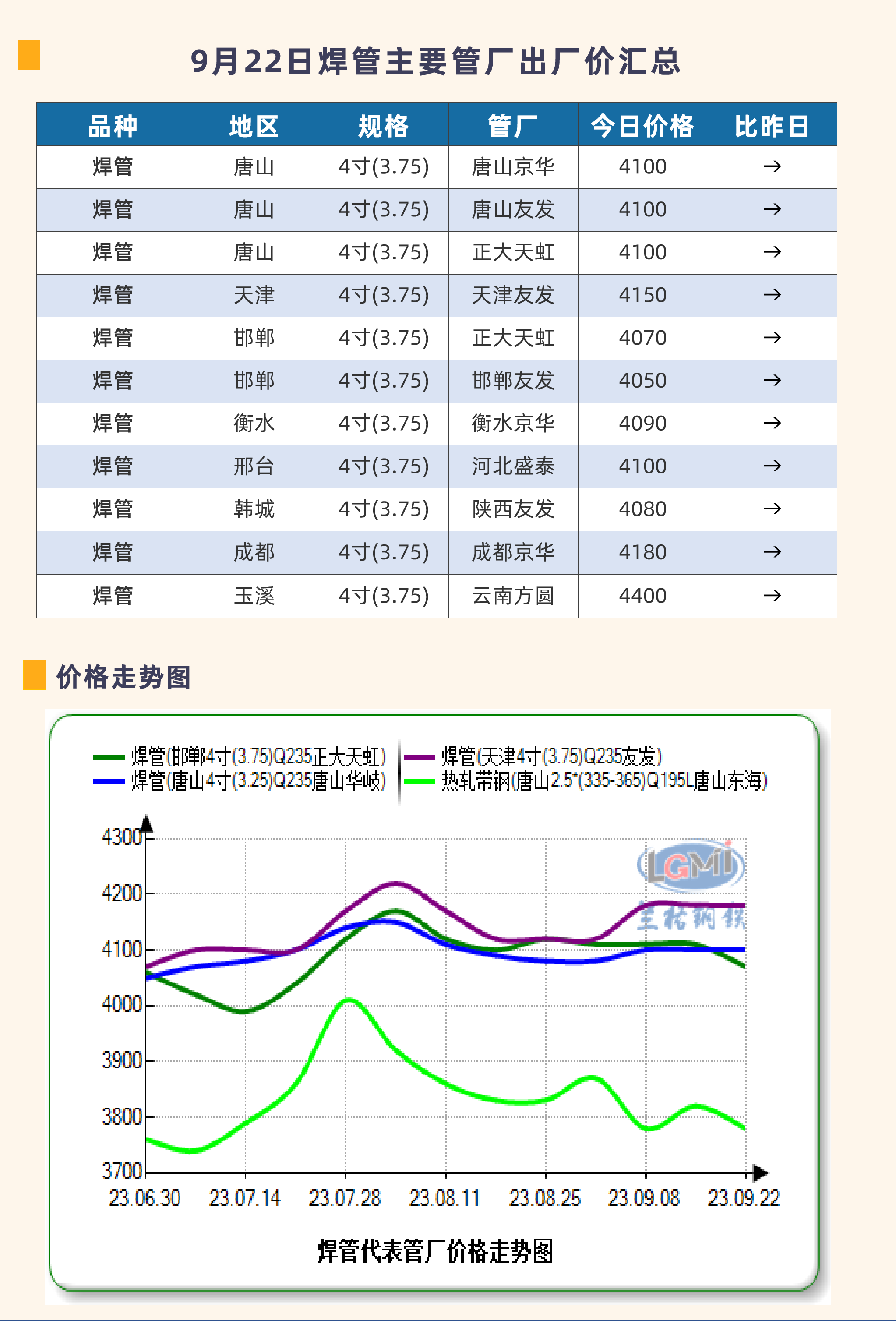 • 9月22日焊管主要管厂出厂价汇总