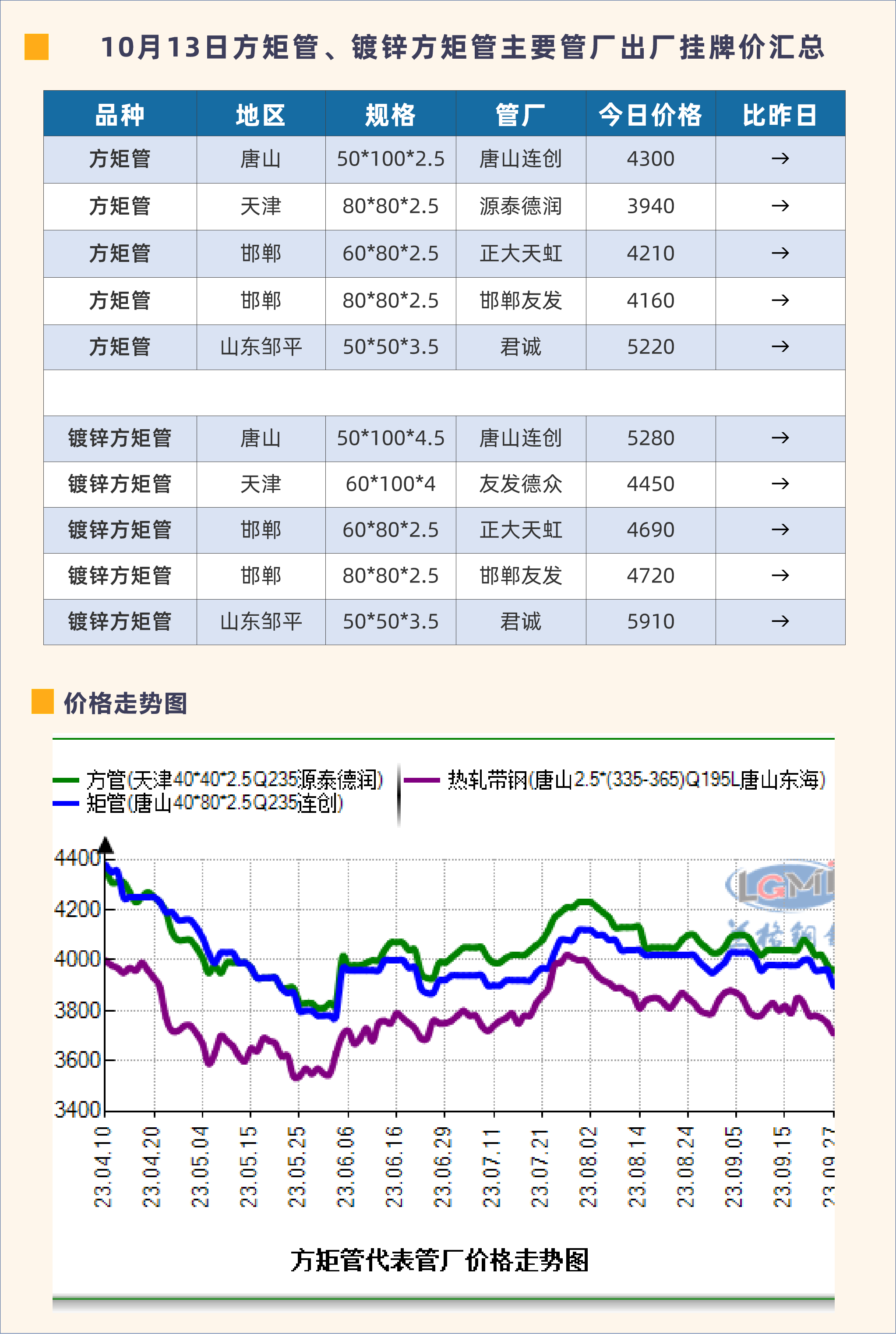 • 10月13日方矩管、镀锌方矩管主要管厂出厂挂牌价汇总