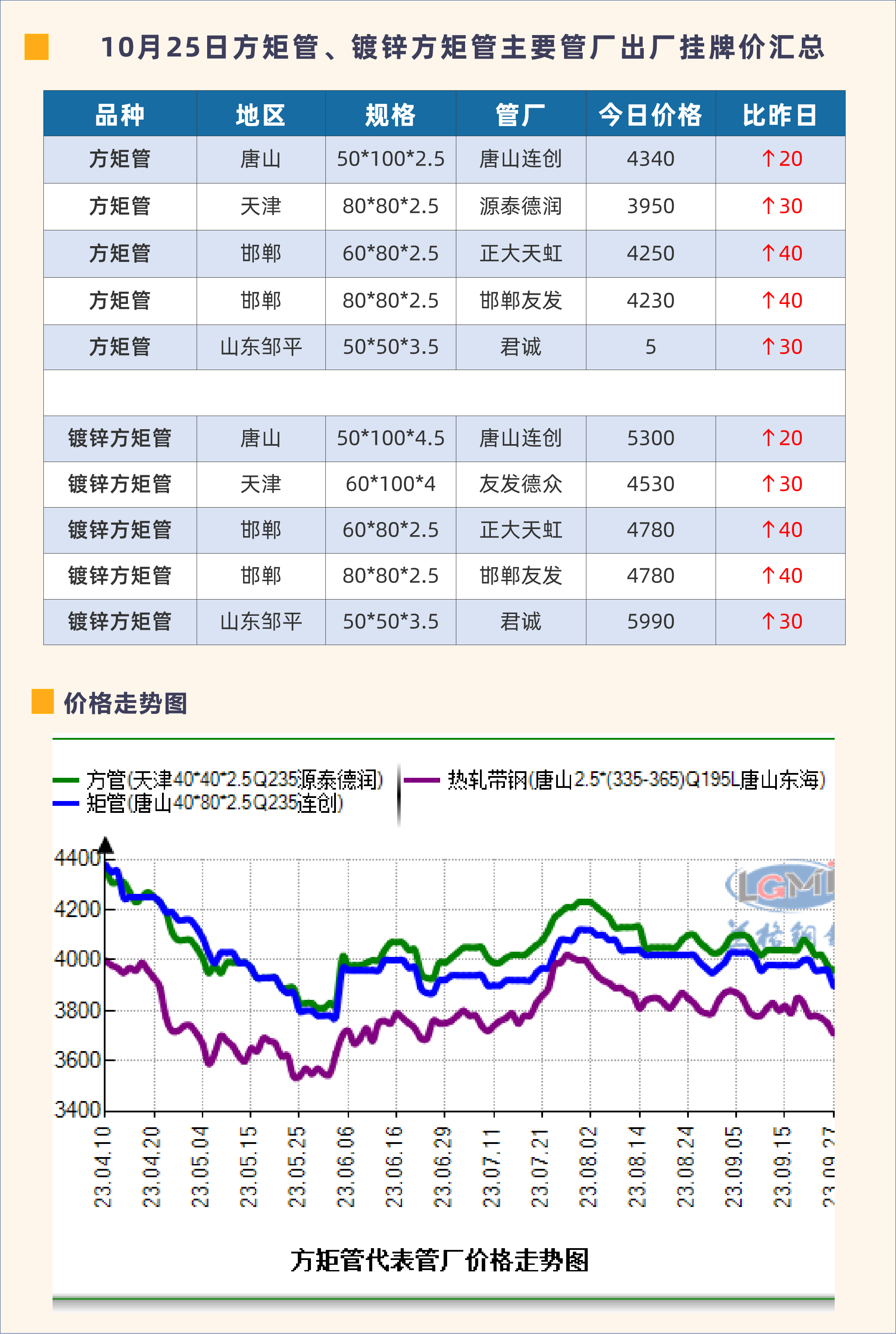 • 10月25日方矩管、镀锌方矩管主要管厂出厂挂牌价汇总