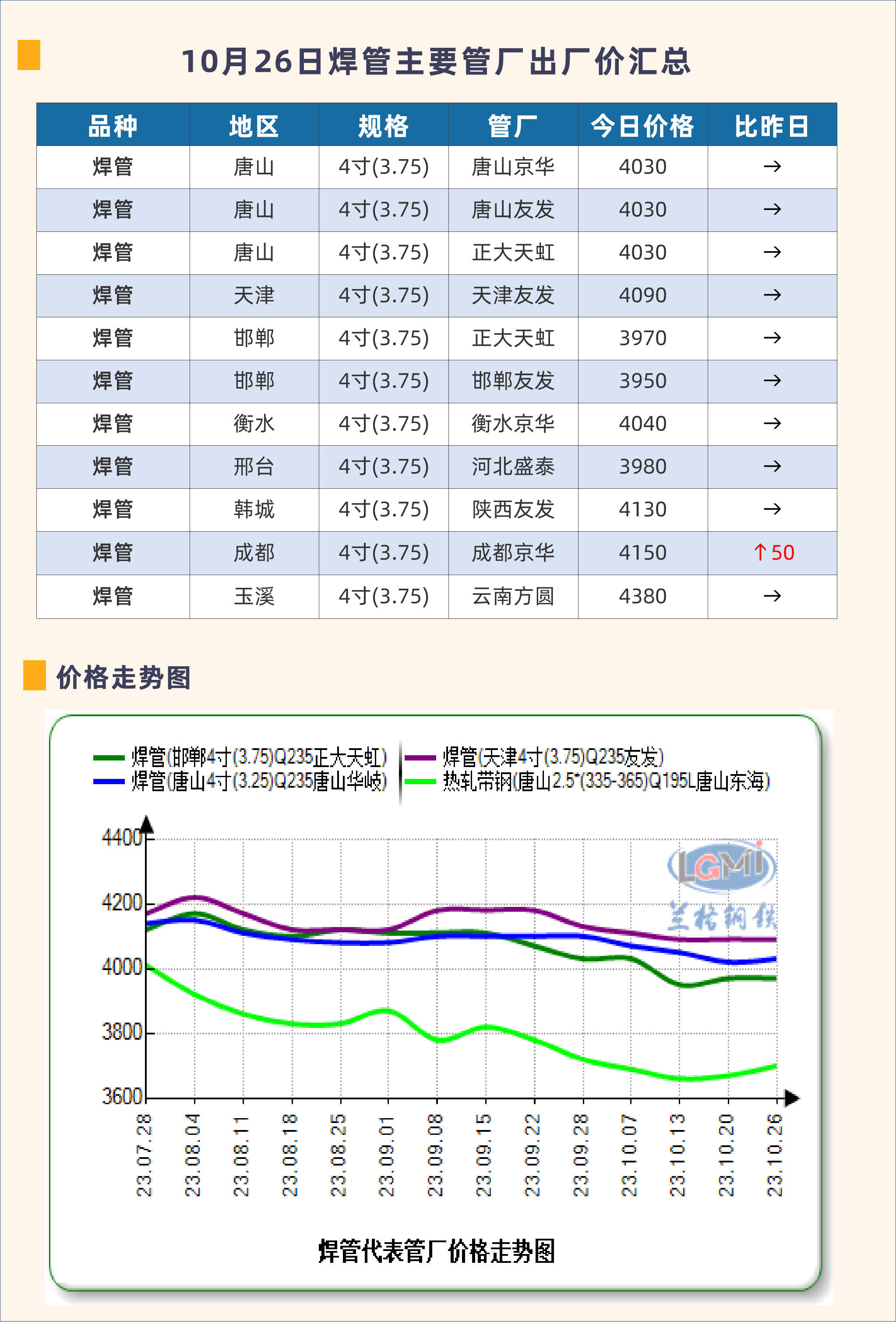 • 10月26日焊管主要管厂出厂价汇总