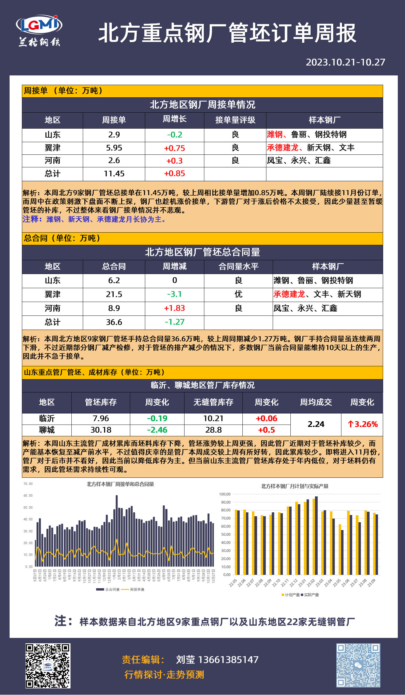 • 兰格调研:北方钢厂管坯周订单量追踪(10月13日)