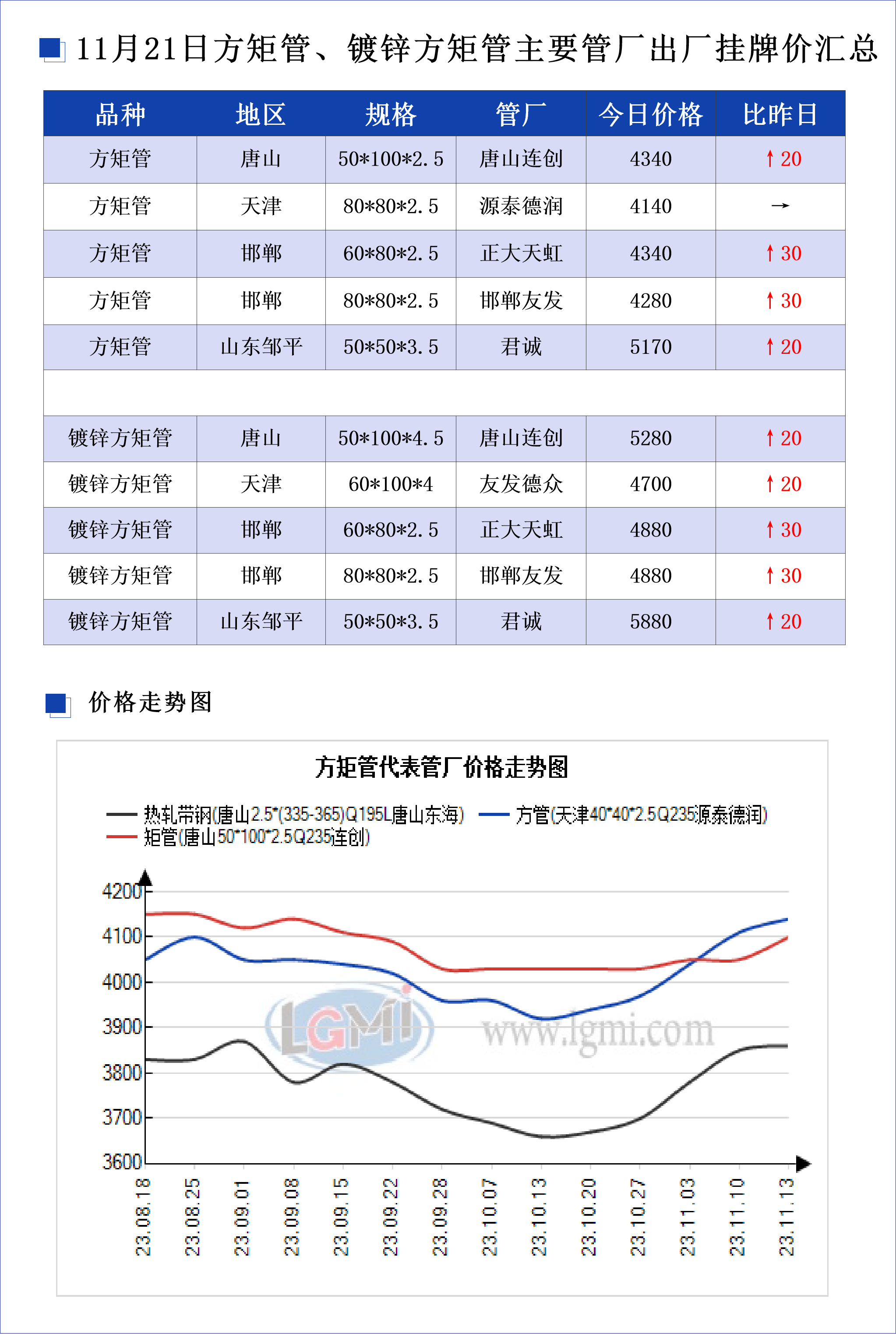 • 11月21日方矩管、镀锌方矩管主要管厂出厂挂牌价汇总