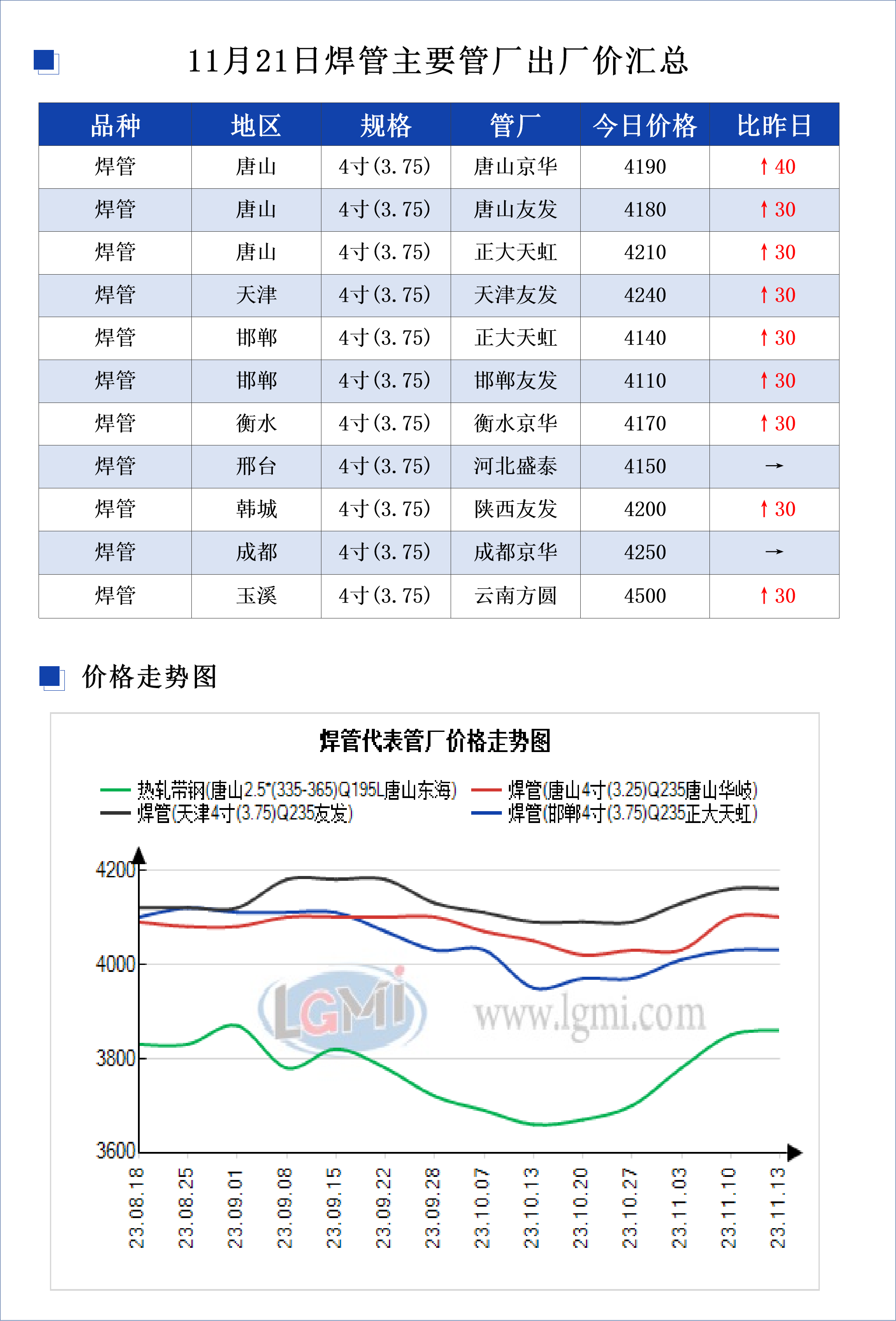 • 11月21日焊管主要管厂出厂价汇总