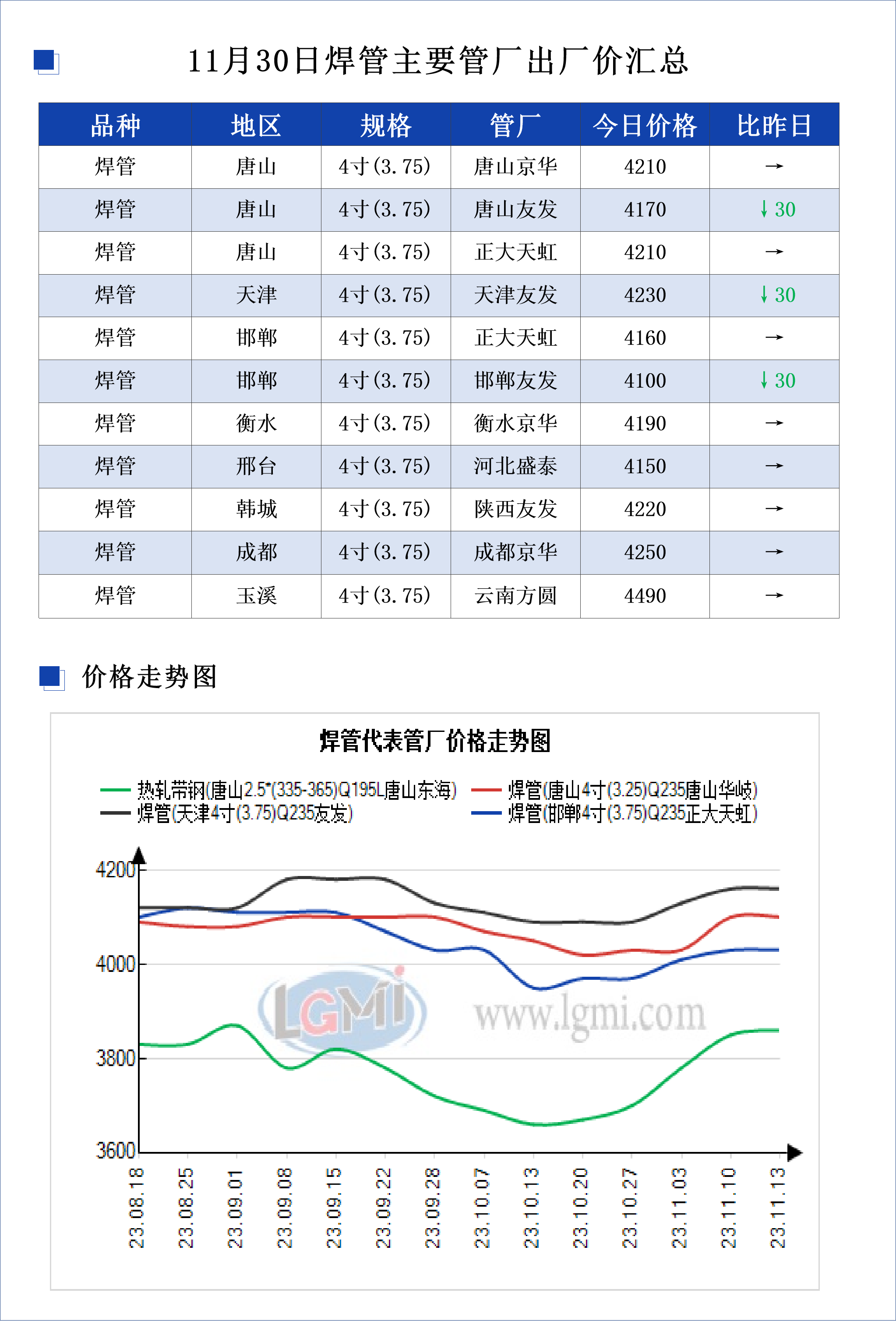 • 11月30日焊管主要管厂出厂价汇总