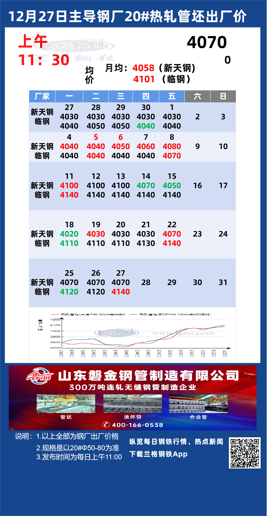 • 12月27日主导钢厂20#热轧管坯出厂价