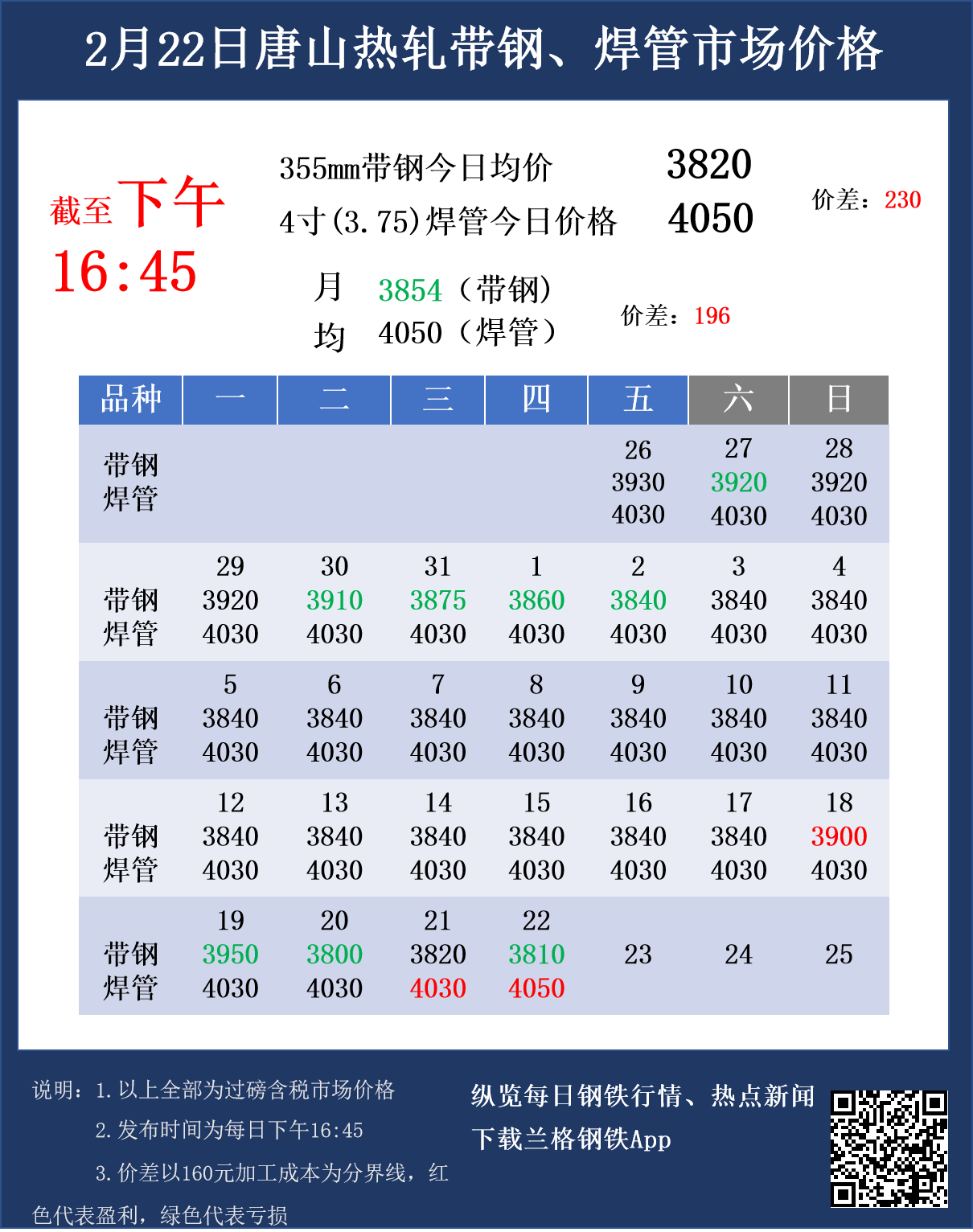 • 2月22日主导钢厂20#热轧管坯出厂价(11:00)