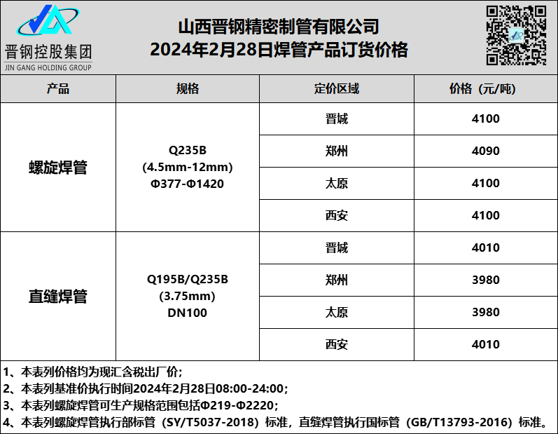 • 2月27日方矩管、镀锌方矩管主要管厂出厂挂牌价汇总