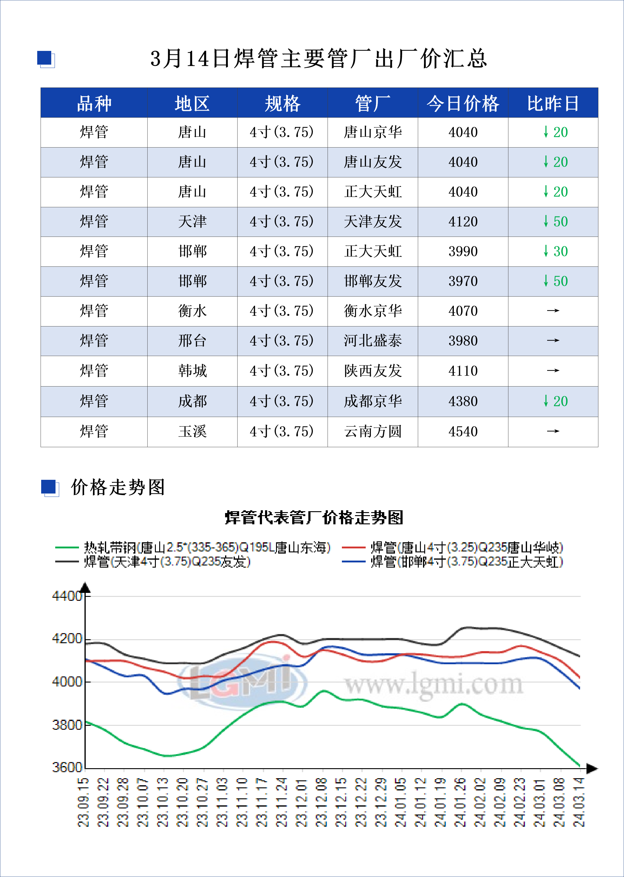 • 3月14日(16:45)唐山热轧带钢、焊管市场价格