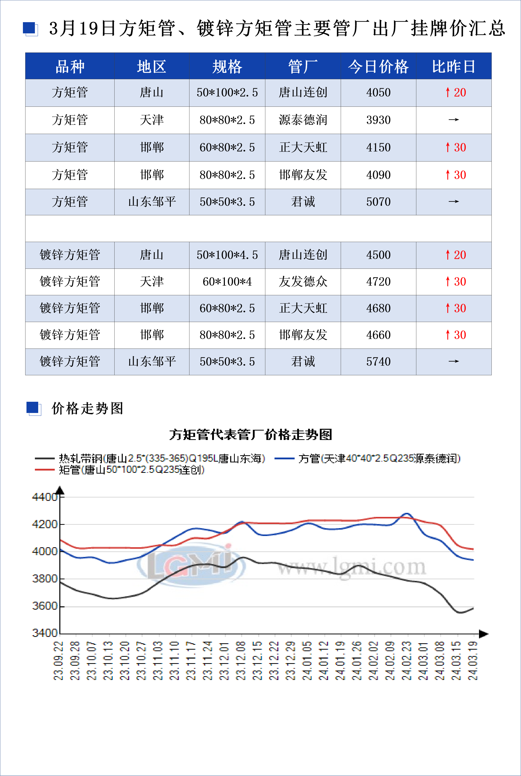 • 3月19日方矩管、镀锌方矩管主要管厂出厂挂牌价汇总