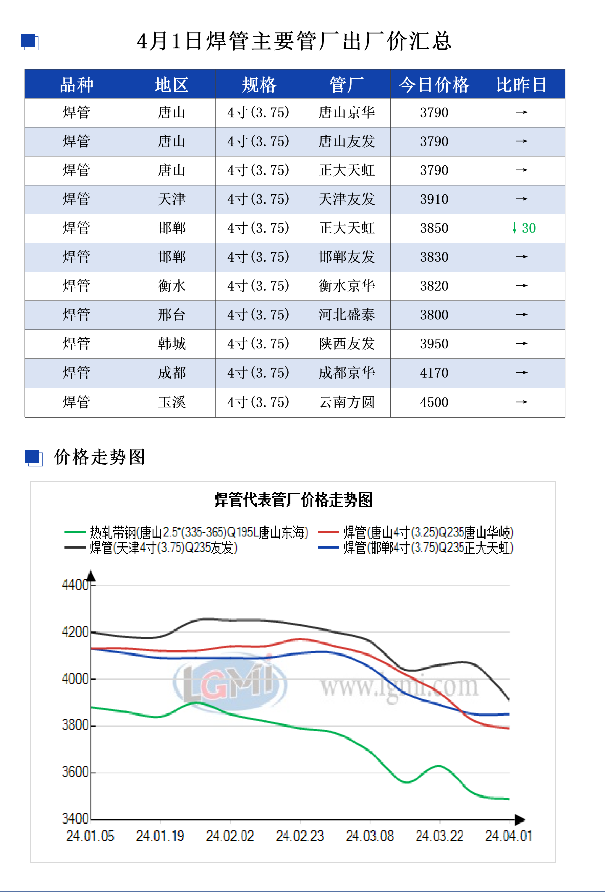 • 3月29日河北盛泰制管有限公司出厂价下调30-50元