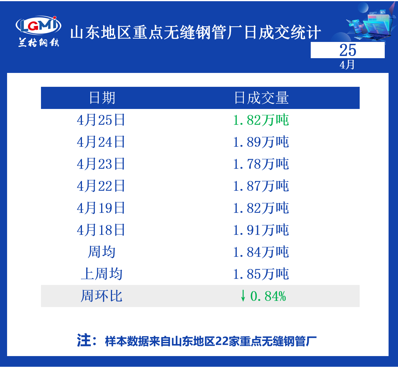 • 4月25日山东地区重点无缝钢管厂日成交统计