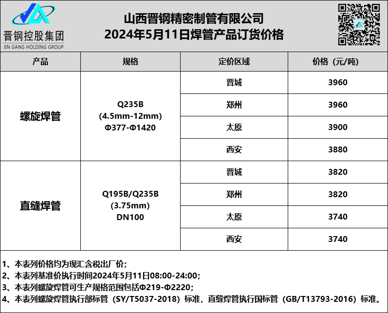 • 5月10日方矩管、镀锌方矩管主要管厂出厂挂牌价汇总