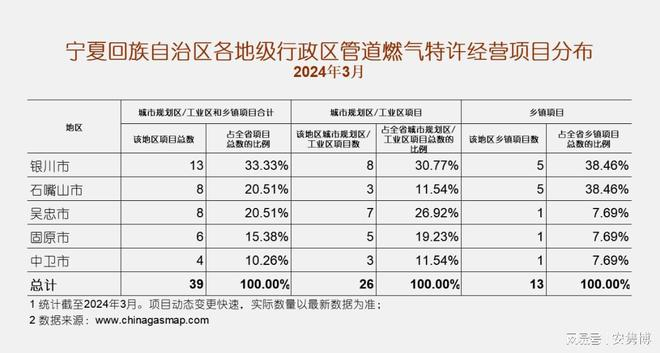 宁夏回族自治区各地级行政区管道燃气特许经营项目分布