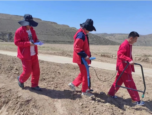 延长气田延919巡线大队开展农耕区管道埋深检测工作,保障管道安全运行