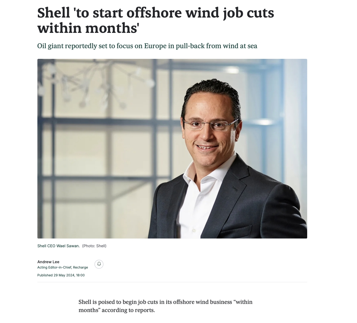 无独有偶,全球石油巨头壳牌也准备在几个月内开始削减其海上风能业务,包括海上风电业务部门裁员等一系列措施。