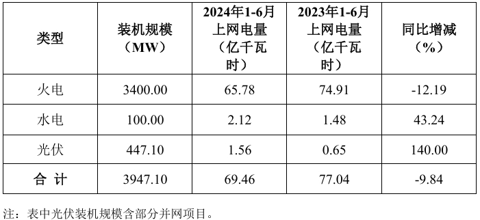 同比减少9.84%!赣能股份披露2024年1-6月上网电量