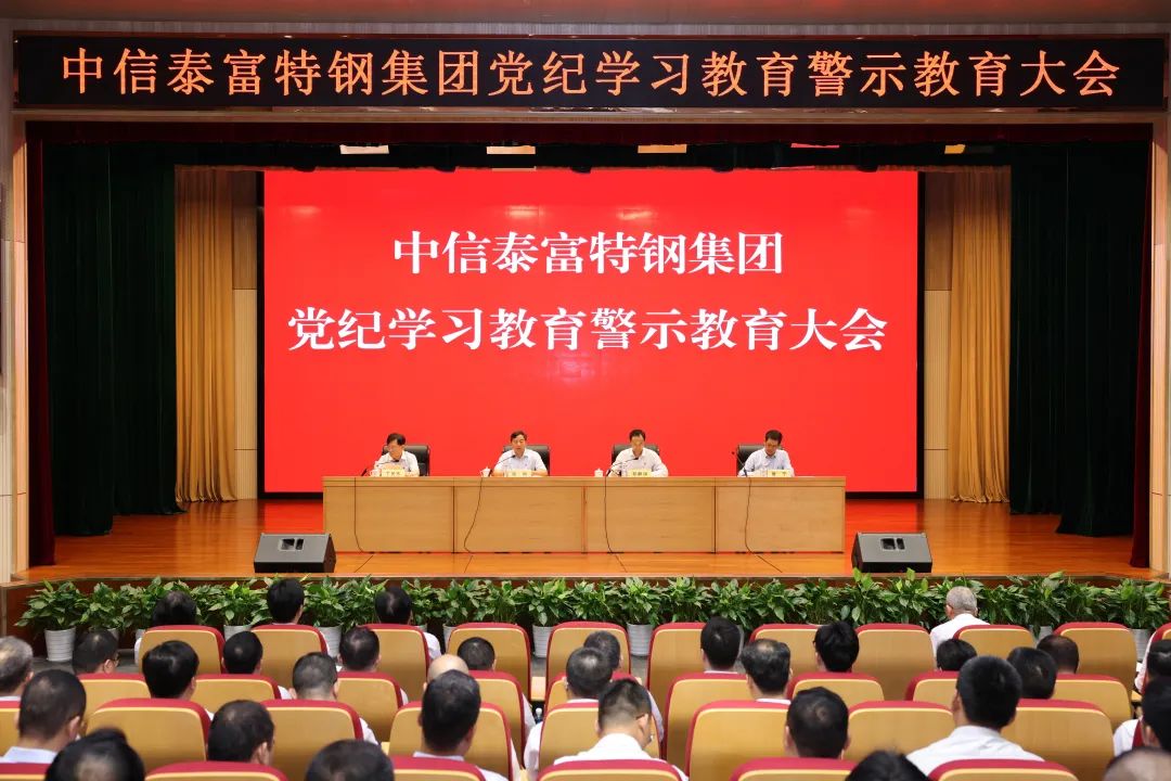 2024年7月18日上午,中信泰富特钢集团召开党纪学习教育警示教育大会。党委书记、董事长钱刚领学习近平总书记关于全面加强党的纪律建设的重要论述并作讲话,党委副书记郏静洪主持会议,纪委书记丁民东通报了特钢近期查办的典型案例,泰富纪委委员、纪委办主任曾宁到会指导。