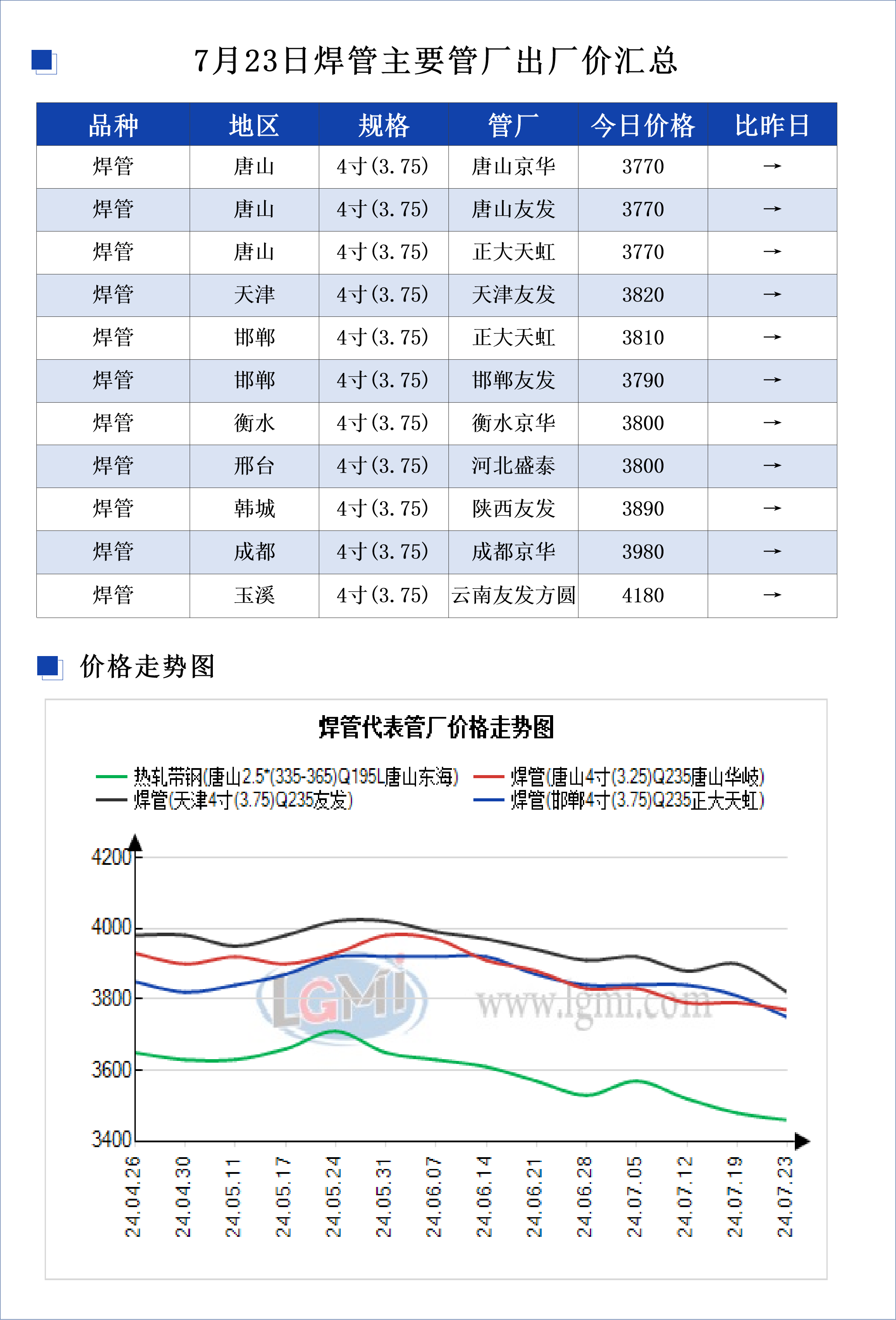 • 7月23日焊管主要管厂出厂价汇总