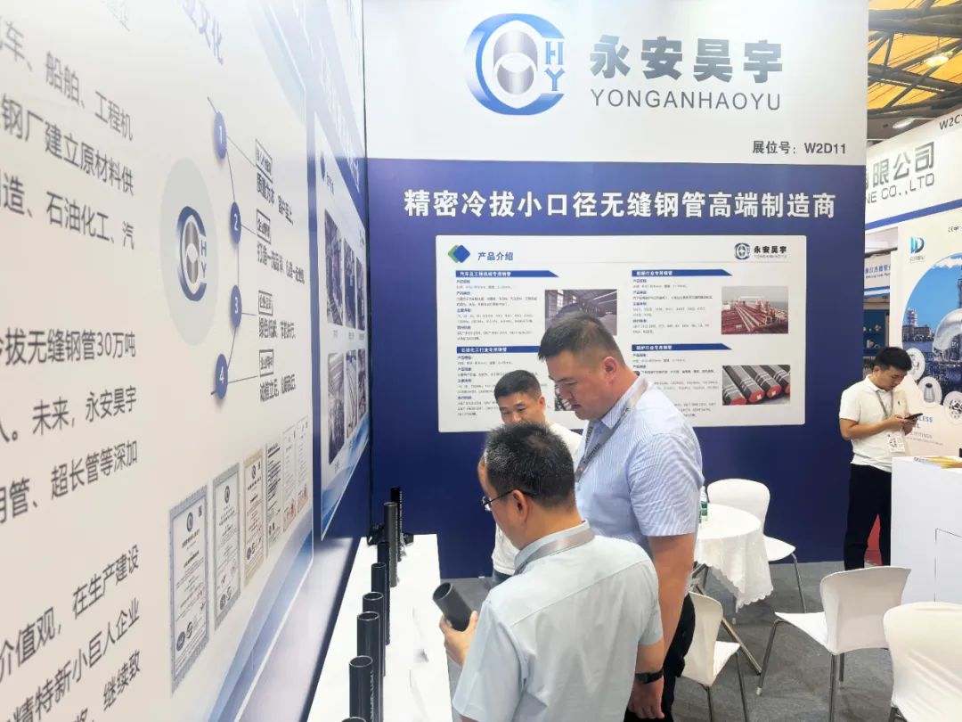 9月25—28日,第11届中国国际管材展在上海新国际博览中心盛大启幕,永安昊宇受邀参展,携最新产品璀璨亮相,共话管材行业发展新蓝图,成为上下游商家、行业专家、媒体关注的焦点。 中国国际管材展作为亚洲领先的管材、管道行业展览会,也是行业的先驱者,在推进管材制造技术创新和智能化转型、提供全新的贸易交流平台方面发挥重要作用。永安昊宇第二次参加中国国际管材展,本次展示的产品不仅在标准及钢种上提升,从传统的中、低端市场稳步迈向高、中端领域,更以高压锅炉管及符合美标AMSE213、ASME335等系列产品的亮相,彰显了在技术创新与产品升级上的实力。同时,永安昊宇的双气保护无氧化产品也惊艳亮相,通过保护气氛热处理的产品真正做到表面无氧化层。合金12Cr1MOVG、15CrMOG、T11、T12等高端钢种的应用,更是为无缝钢管行业应用研究注入了新的活力。