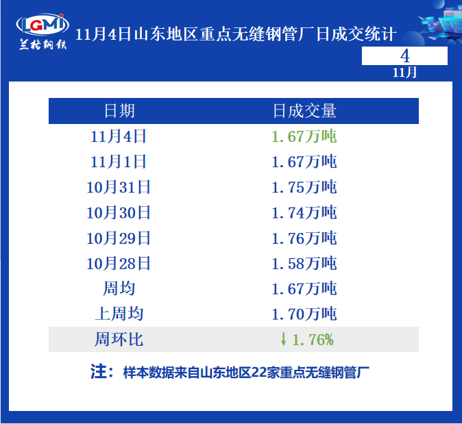 • 11月4日山东地区重点无缝钢管厂日成交统计
