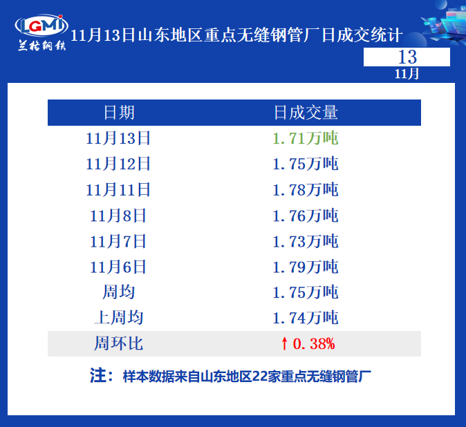 • 11月13日山东地区重点无缝钢管厂日成交统计