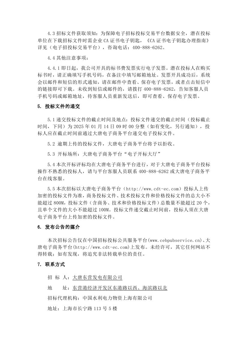 大唐东营发电有限公司 1000MW1号炉一级低温省煤器改造 EPC工程招标公告