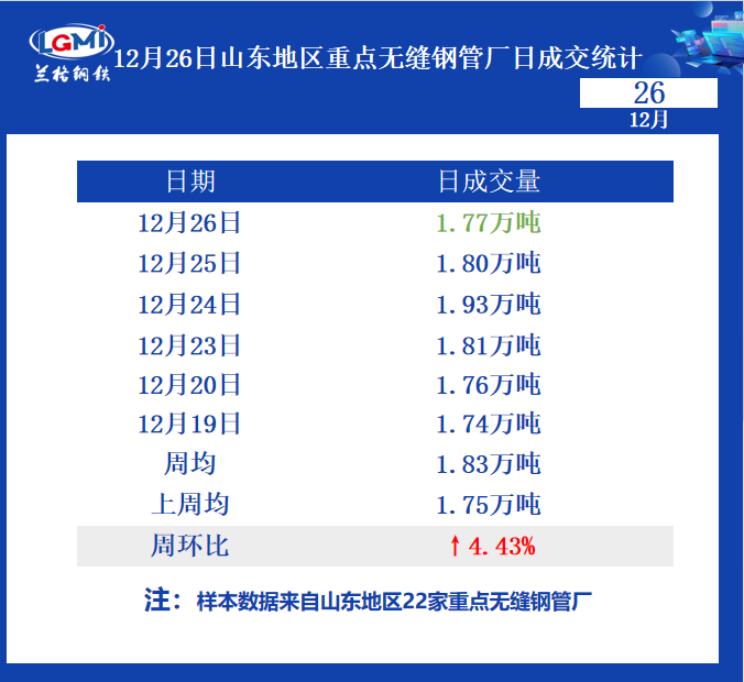 • 12月26日山东地区重点无缝钢管厂日成交统计