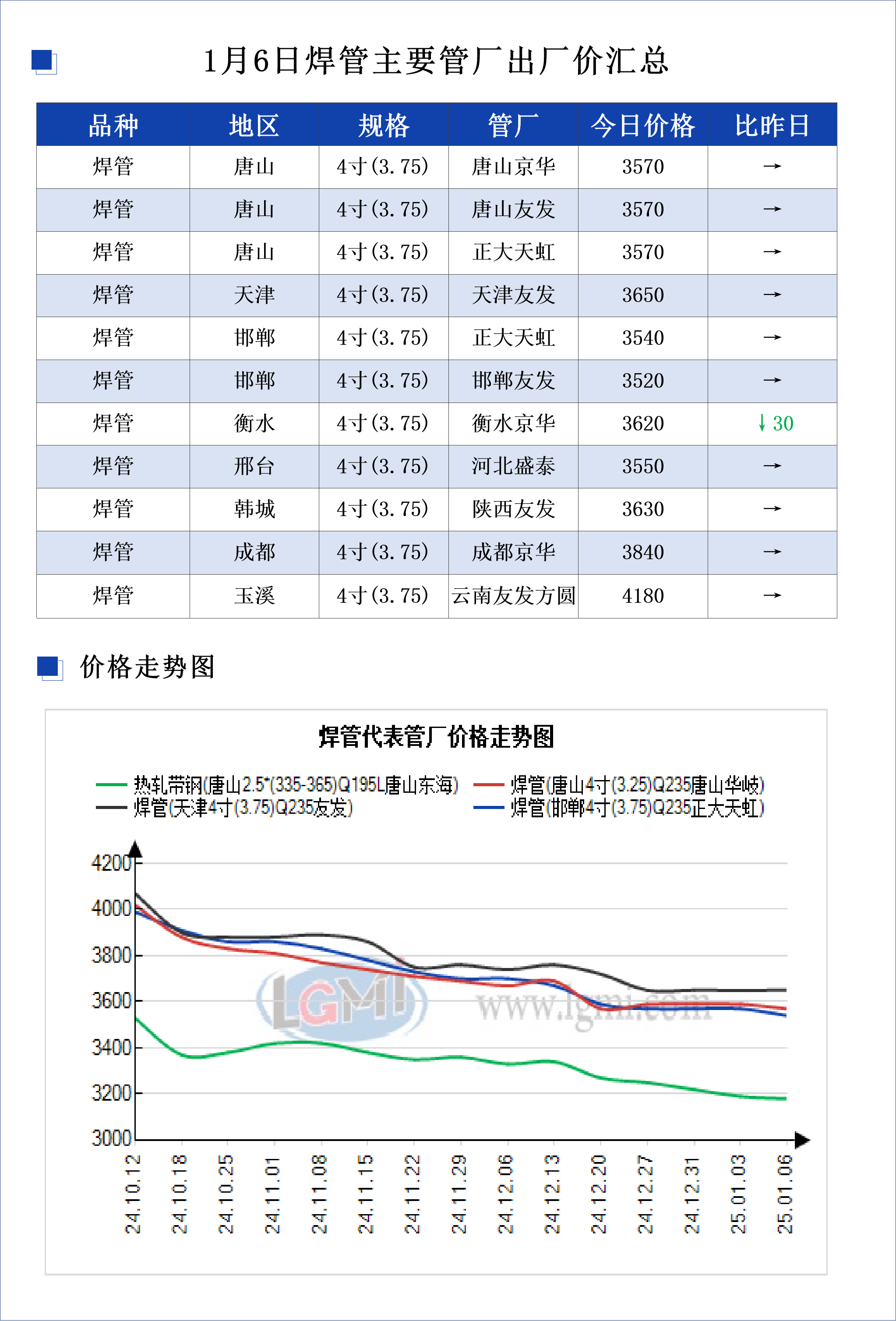 • 1月6日天津友发钢管集团股份有限公司第一分公司出厂价下调20元