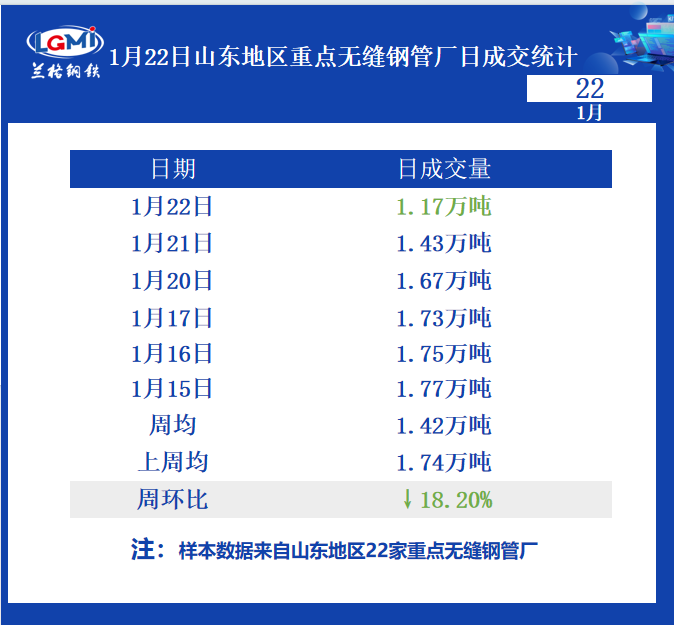 • 1月22日山东地区重点无缝钢管厂日成交统计