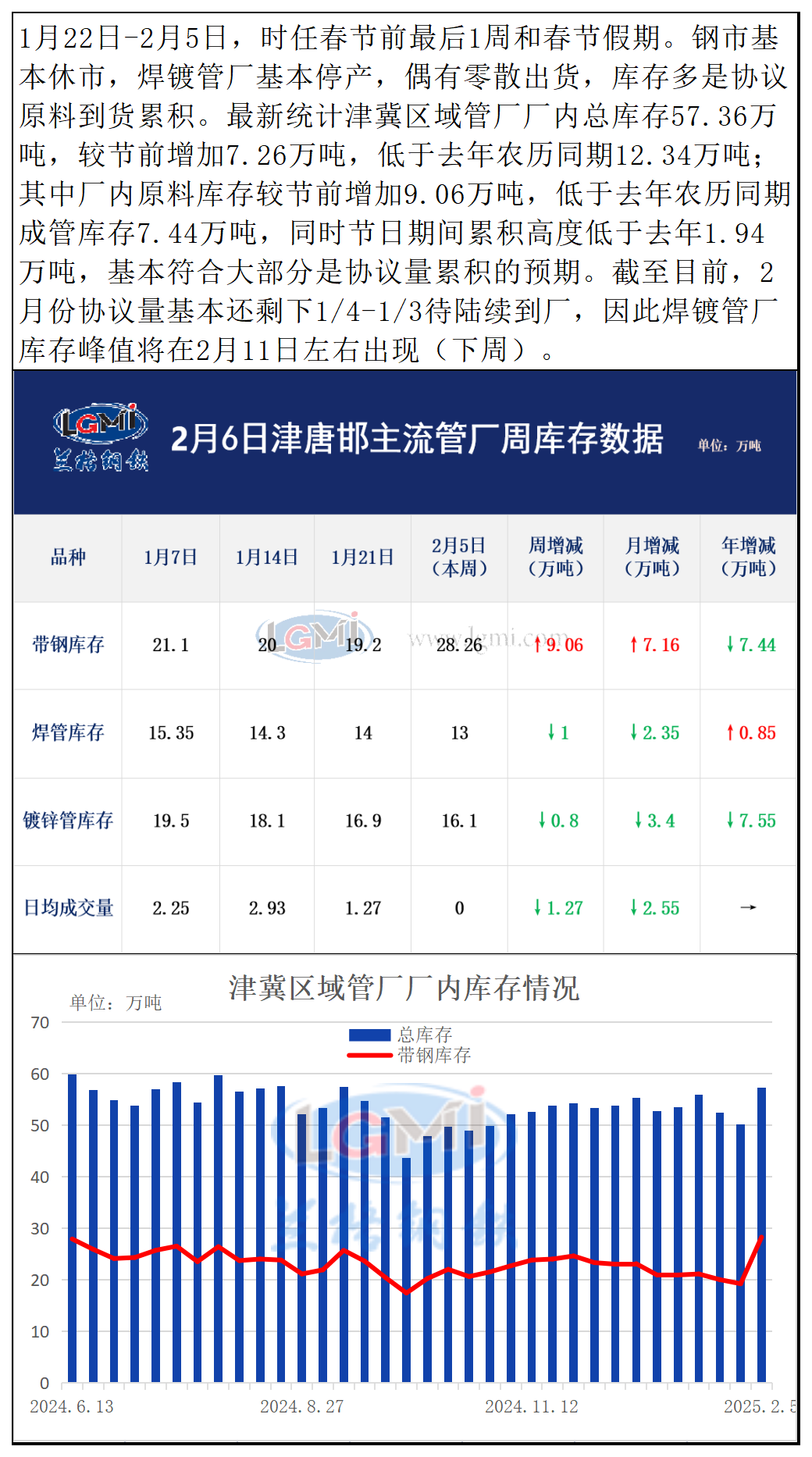 兰格调研:春节假期 焊镀管厂整体库存如预期累积