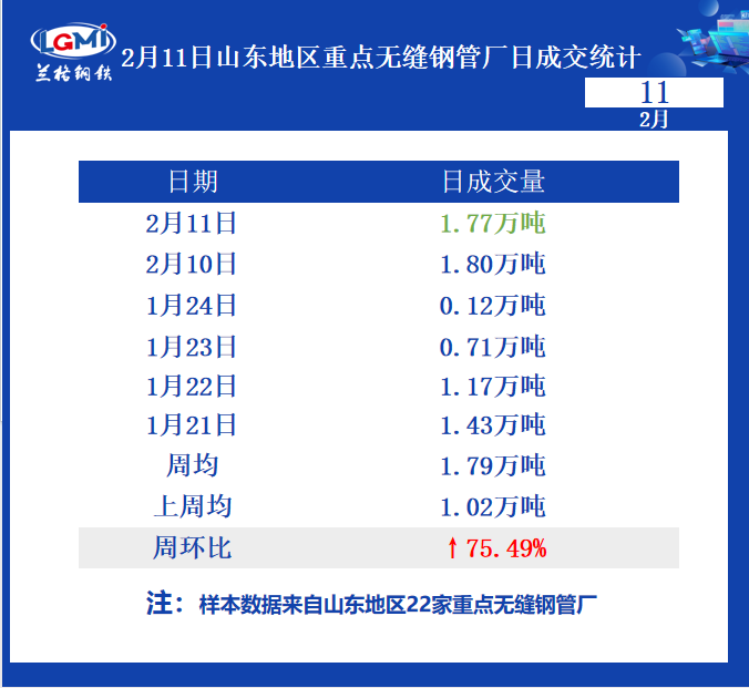 • 2月11日山东地区重点无缝钢管厂日成交统计