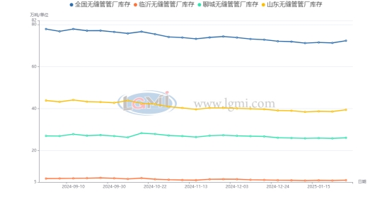截至2025年2月12日,据兰格调研,山东临沂、聊城、潍坊、烟台21家样本无缝厂总库存40.18万吨,较上周增加0.73万吨。春节期间,多数高炉的无缝管生产企业仍正常生产或部分减产,但物流停滞,产品无法及时运出,使得管厂库存增加。春节后物流虽逐步恢复,但仍需一定时间才能完全顺畅,生产和运输之间的衔接不畅导致库存持续累积。