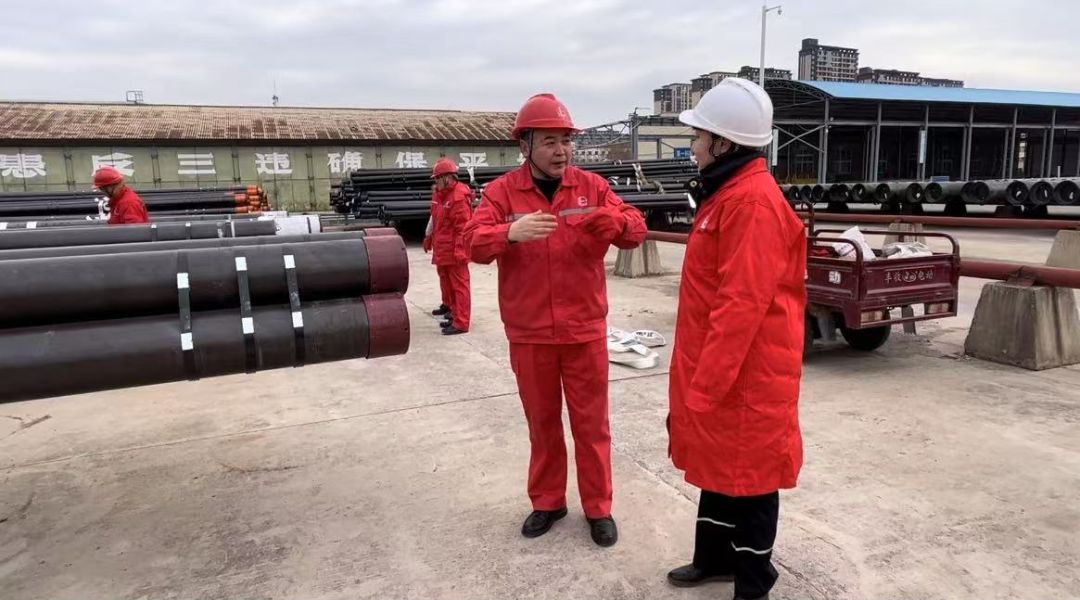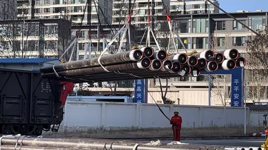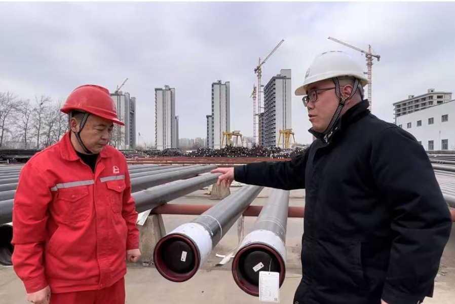 此时,中信泰富特钢旗下天津钢管制造有限公司(简称天津钢管)销售和技术人员新春走基层记者一行人走出高铁站,直奔位于河南省濮阳市华龙区的中国石化中原油田物资供应中心物资储备总库(简称物供总库)。蛇年新春,天津钢管首批1000多吨石油套管已发运到油田…… 一场蛇年迎新的“津喜相豫”,奏响了国产钢管助力我国能源工业高质量发展扎实推进的“2025奋进乐章”。 “质”同道合: 共筑国家能源供应安全之基 春节前夕,习近平总书记在辽宁本溪市考察本钢板材冷轧总厂第三冷轧厂时说,钢铁产业是我们国家的重要基础产业,实体经济是国民经济的根基所在。要继续努力,把短板补上,把结构调优,继续为中国式现代化多作贡献。 “总书记对钢铁行业、钢铁企业高度重视、深切关怀,让钢铁人深受鼓舞、倍感振奋,又深感责任重大。此行就是紧跟2025年新春第一单,深入油田交流钢管使用情况,以服务推动新品研发互动,以钢铁人的强烈使命感,保障国家能源供应安全。” 2月5日15时,在物供总库货场。 货列车厢上 “为中原油田加快打造千万吨级一流油气公司贡献天津钢管力量” 的红色横幅赫然入目。 为满足用户急需,保障国家重点工程项目,天津钢管春节前加紧协调生产,提前10天完成交付,并克服春节发运紧张的困难,通过铁路运输专线将钢管顺利运达中原油田物供总库。负责中国石化区域业务的钢管销售公司油井管二公司业务经理朱钜鹏走上前,与总库负责人对接。