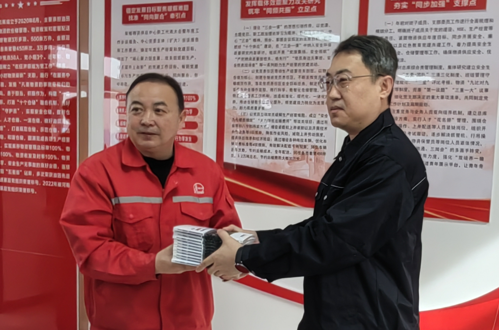 ▲在采油作业区 在濮阳县胡状镇石槽村中原油田濮东采油厂,一大片红黄相间的“磕头机”以独特的韵律上下摆动。此时,一位皮肤黝黑、身穿红色工装的采油工人,正在寒风中检查“磕头机”运行情况。采油师傅姓何,听说记者来自钢铁行业,说道:“这一片‘磕头机’地下就有来自天津钢管的产品。”他指指远方说:“那片区块正在打储气库井,也用了天津钢管的特殊扣套管,解决了各种复杂难题。国产套管质量,没的说!” 在“磕头机”忙碌的旷野,一座高耸的井架正进行套管入井作业。“真巧,这口井明天正式开钻。”钻井队李经理告诉记者,“在油田勘探开发过程中,中原油田坚持使用各种特殊扣及高强高韧性国产套管。天津钢管的产品质量和跟井服务很棒!”他给了天津钢管一个大大的赞。 “钢油”相“技”: 一天多场技术“交锋”,共赴新程 2月6日,天津钢管销售、技术团队和中原油田物资供应、质检等单位的多场工作交流会交错展开。 中原油田物资供应中心副经理武宇说:“2021年10月21日,习近平总书记考察胜利油田时指出,石油能源建设对我们国家意义重大,中国作为制造业大国,要发展实体经济,能源的饭碗必须端在自己手里。” 他接着说:“我们牢记嘱托,肩扛重任,努力在增油上产、降本增效上取得新突破。近年来,在天津钢管大力支持下,顺利完成了中石化中原储气库、普光气田等重大能源开发工程的石油专用管保供任务。希望今后双方确立更多项目课题,开发新技术、新产品,共同为国家能源工业发展作出更大贡献。” 天津钢管同志向中原油田同志赠送技术手册。