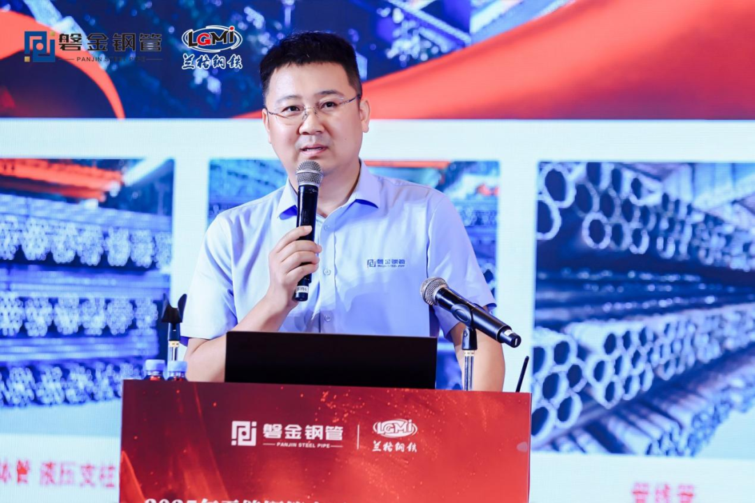 △山东磐金钢管制造有限公司总经理助理国伟军 张勇以“2025年度磐金销售和服务政策解读”为主题发表了演讲,他从2025奋斗目标、产品细分与升级、销售模式、走出去战略、信息化精准统筹、产品质量、客户服务、售后服务等方面进行了全面介绍。