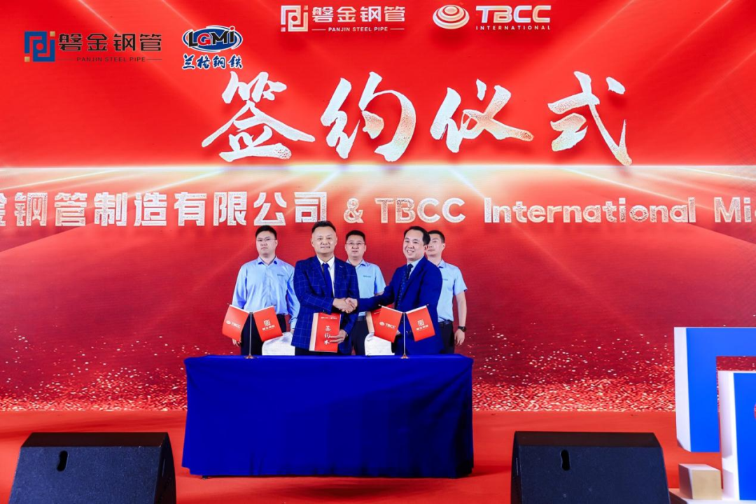△山东磐金钢管制造有限公司副总经理张勇 大会隆重举行了“重要战略合作伙伴签约仪式”。在山东磐金钢管制造有限公司副总经理张勇、邱野、总经理助理高全宗的共同见证下,鲁丽集团党委副书记、冶金板块董事长傅士刚与TBCC International Middle East FZE董事王清冠共同签署了“山东磐金钢管制造有限公司&TBCC International Middle East FZE”战略合作协议。
