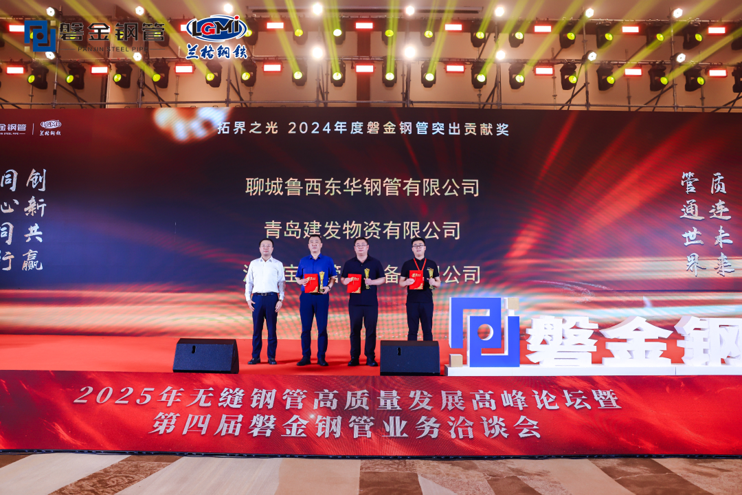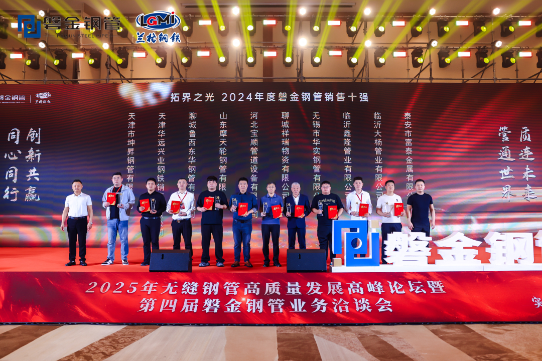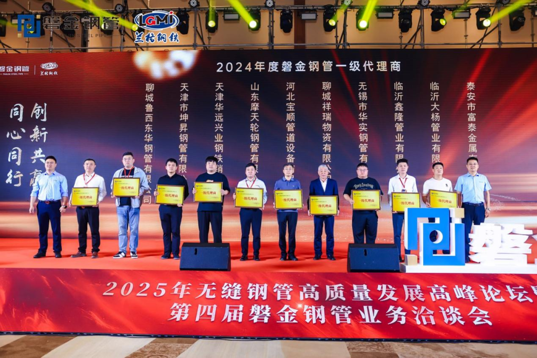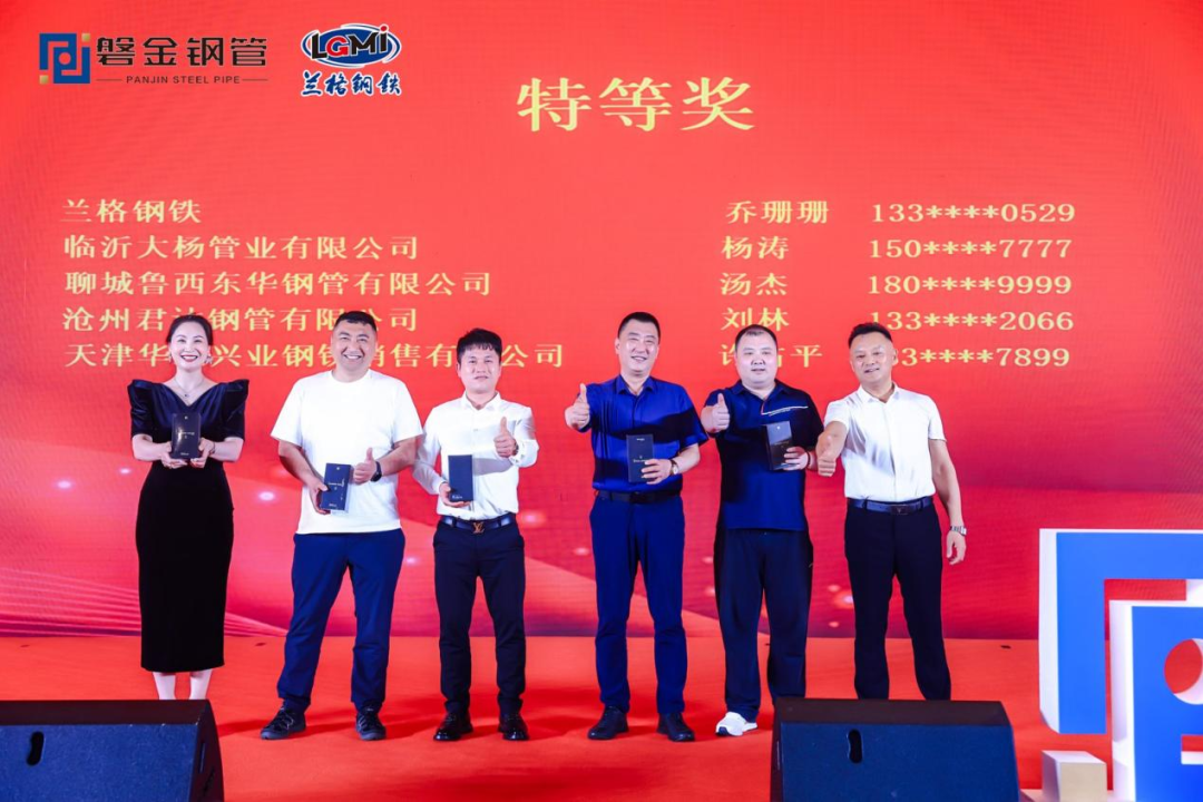 随后,山东磐金钢管制造有限公司副总经理张勇、邱野,鲁丽集团冶金板块副总经理马清文、魏文升,总经理助理高全宗,山东磐金钢管制造有限公司总经理助理国伟军,鲁丽集团党委副书记、冶金板块董事长傅士刚,兰格集团总裁刘陶然、鲁丽集团党委书记薛明亮等领导为获得一级代理商、销售十强、特别贡献奖等奖项的企业代表颁发奖牌、奖杯。
