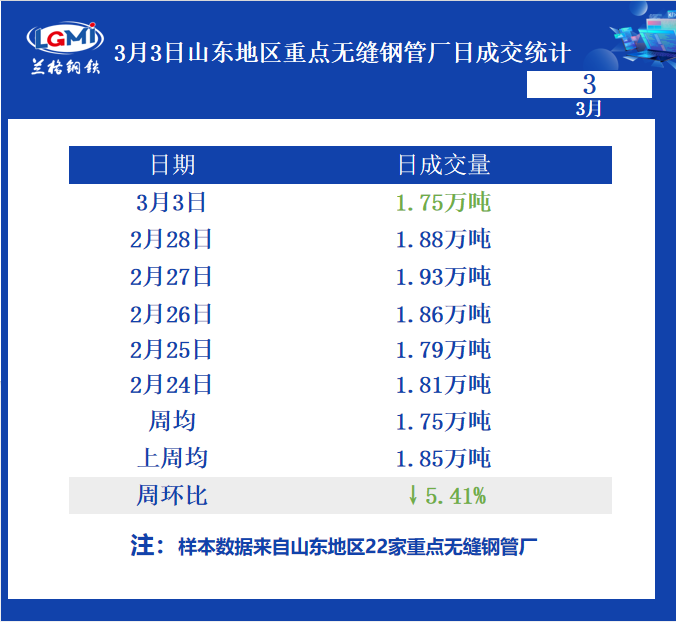 • 3月3日山东地区重点无缝钢管厂日成交统计