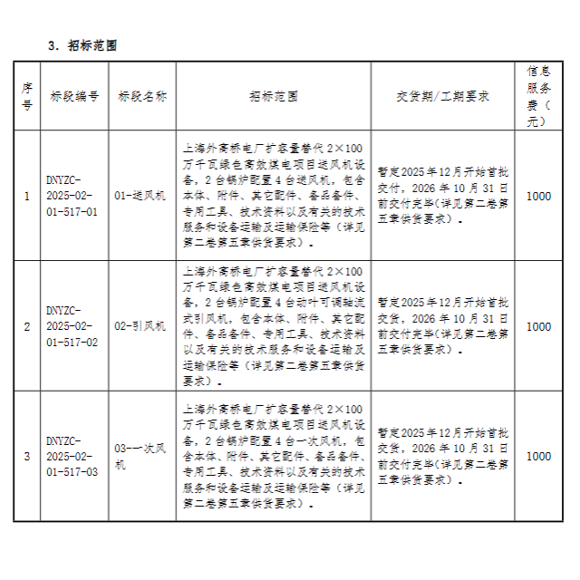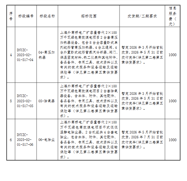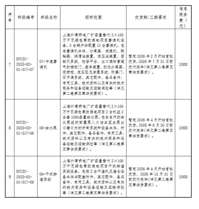 上海电力外高桥电厂2×1000MW煤电项目第一批辅机设备招标