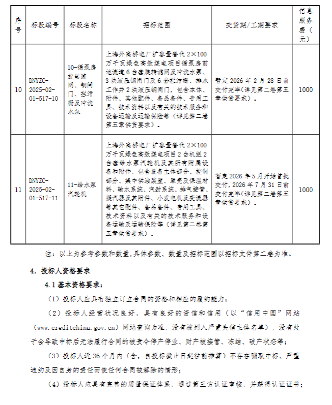 近日,国家电投发布上海电力外高桥电厂扩容量替代2×1000MW绿色高效煤电项目第一批辅机设备)招标公告,详情如下: