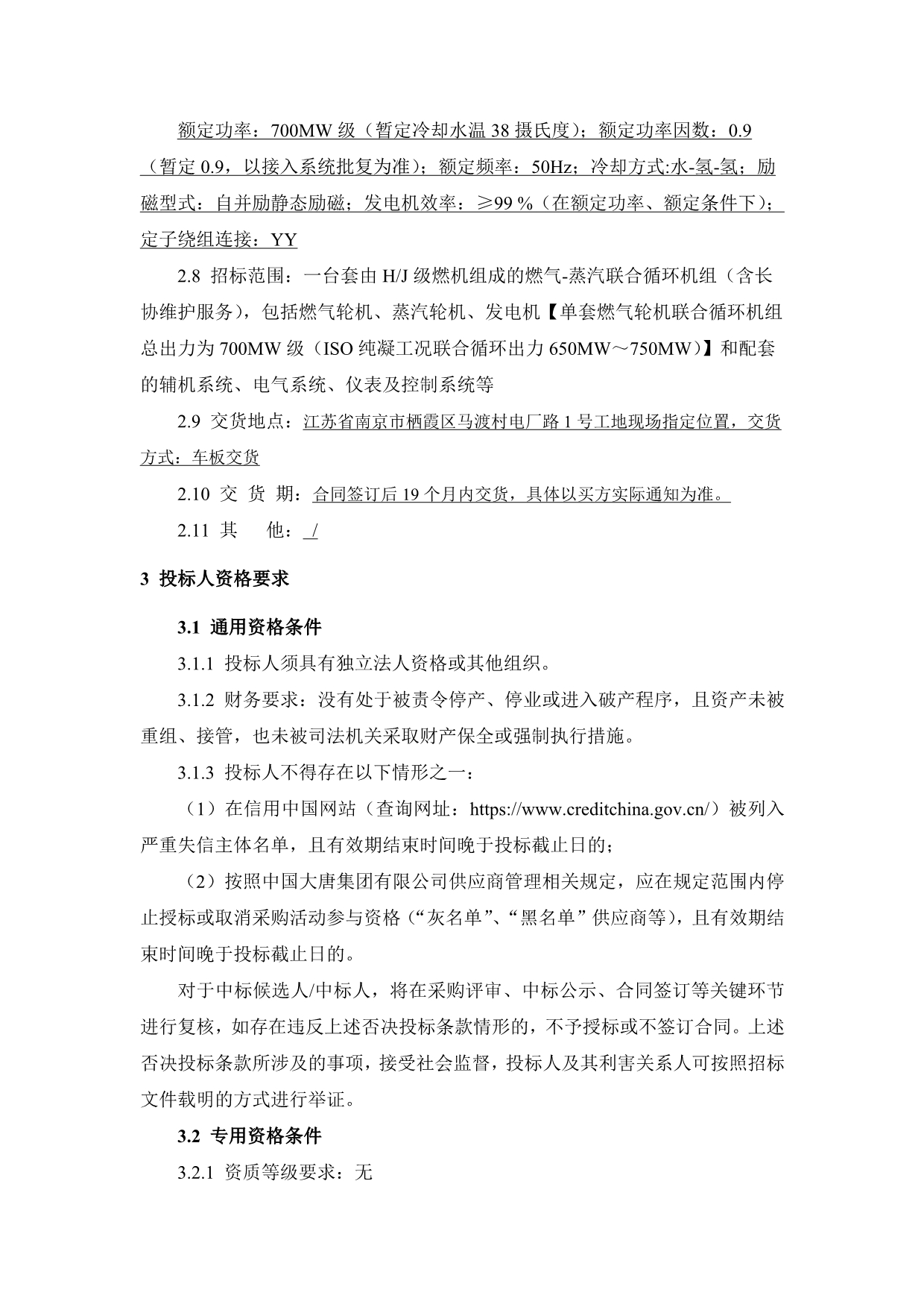 大唐南电二期2x745MW燃气轮机示范项目主机(机岛)设备采购招标