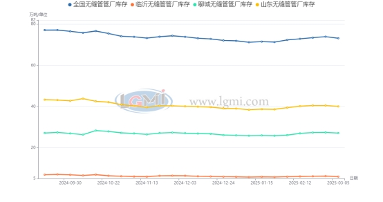 截至2025年3月6日,据兰格调研,山东临沂、聊城、潍坊、烟台21家样本无缝厂总库存39.54万吨,较上周减少0.62万吨。山东主流管厂目前订单并不好,而且本周期货盘面震荡走低,近期多地启动环保限产一定程度上对管材供给形成压制,导致管厂库存下降,管厂挺价意愿有所上升,不过限产时间有限,还得警惕原料需求减少造成无缝管成本下移风险。
