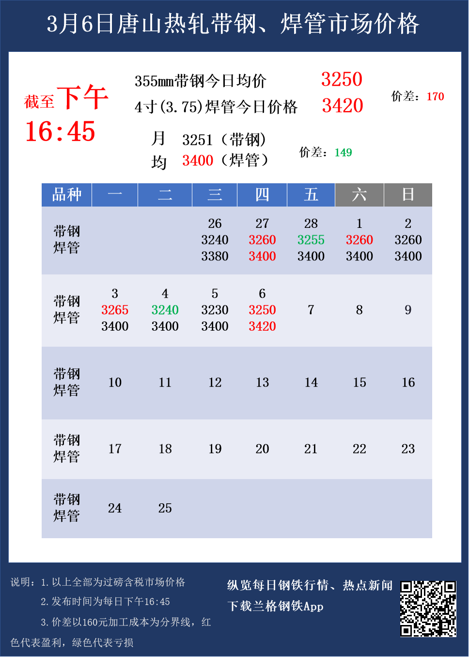 • 3月6日春节后主流焊接钢管及上游出厂价汇总