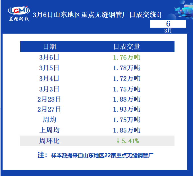 • 3月6日山东地区重点无缝钢管厂日成交统计